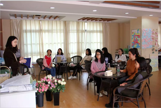 为着力培育学生理性平和、积极向上的健康心态,促进学生心理健康素质与思想道德素质、科学文化素质协调发展,在学生工作处的关心指导下,机械学院领导、老师精心策划开展了心理活动月系列活动。2018年3月29日下午,由机械工程学院分团委主办,机械工程学院学生会礼仪部承办的心理月系列活动之“幸福像花儿一样”插花讲座在榴园活动室如期举行,江南大学榴园黄丽萍站长、机械工程学院心理扎口辅导员张舒、花艺师胡钰婷和机械工程学院2017级女生参加本次活动。